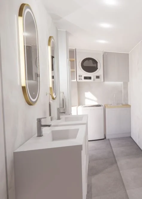 Upgrading a 25 year old Bonogin home is no small task. Approached by a local, this project sought to create more usable and accessible spaces within the home, and remove old, tired finishes. The floor plan we designed incorporated a new, modern kitchen location and butlers pantry, interconnected with living, dining and an outdoor entertaining area. At the same time, bathrooms, laundries and bedrooms were upgraded with stone and brass elements, new storage space and seamless mood lighting elements. Further consideration was given to landscaping, paint finishes and enhancing unused front yard space.